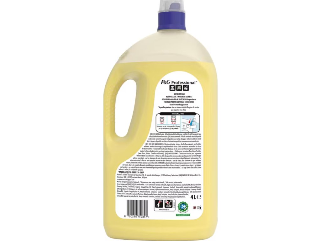Lenor Professional Sommerbrise 4 l je vysoce účinná profesionální aviváž, která dodá prádlu dlouhotrvající svěžest, jemnost a ochranu vláken. S kapacitou až 200 pracích dávek je ideální pro intenzivní domácí použití i profesionální provozy jako jsou hotely, prádelny či wellness centra.