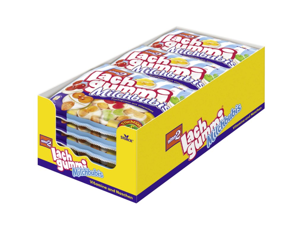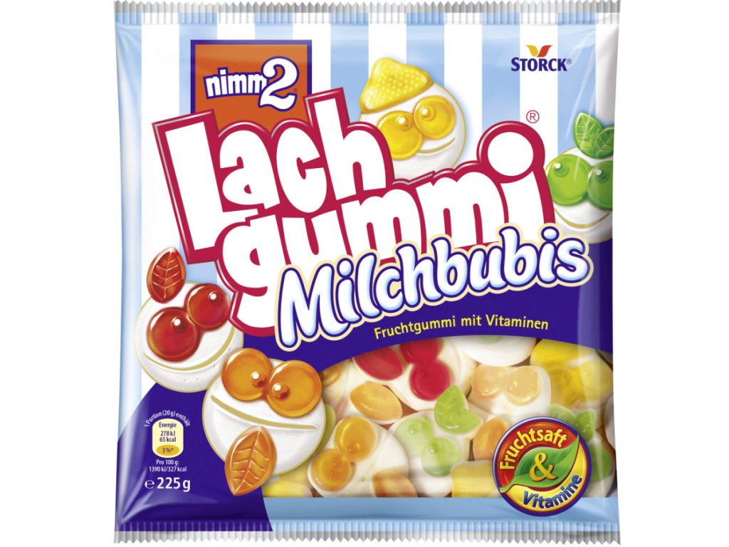 Nimm2 Lachgummi Milchbubis jsou měkké ovocné bonbony s přídavkem odstředěného mléka, ovocné šťávy a důležitých vitamínů. Tato zábavná sladkost ve tvaru veselých „bubis“ (hlaviček) v sobě spojuje jemnou konzistenci, lahodné ovocné příchutě a jemný mléčný podtón, který potěší děti i dospělé.