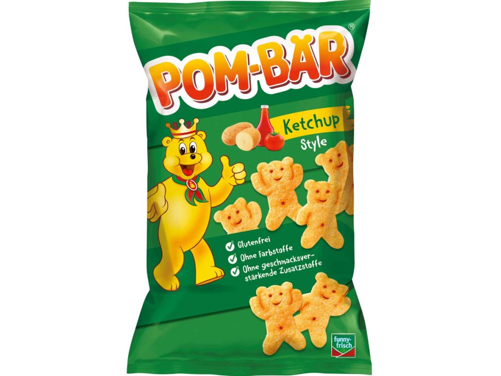 Pom-Bär s příchutí kečupu je břinkavý snack ve tvaru veselých medvídků, který potěší malé i velké mlsouny. Charakteristická intenzivní rajčatová chuť s nádechem koření v kombinaci s lehkou konzistencí dělá z těchto medvídků skvělou volbu pro každou příležitost – ať už doma, na výletě nebo jako rychlá svačinka do školy.