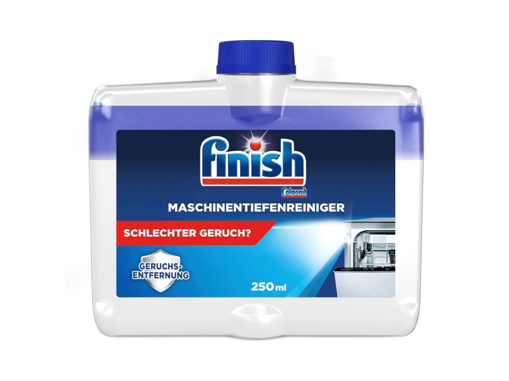 Potýkáte se s nepříjemnými pachy, které vycházejí z vaší myčky nádobí? Řešením je čisticí kapalina do myček Finish. Tento výkonný čistič strojů účinně odstraňuje skrytý vodní kámen, nahromaděnou mastnotu a odolné usazeniny nečistot a zajišťuje o 100 % hygieničtější čistotu* pro myčku, která svěže voní a přináší čisté výsledky mytí.