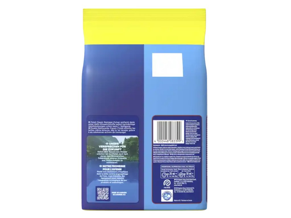 Finish Classic prášek znamená čistotu bez kompromisů – pro čerstvě umyté, lesklé a svěže vonící nádobí po každém cyklu. Vyzkoušejte kvalitu, na kterou spoléhá miliony domácností po celém světě.