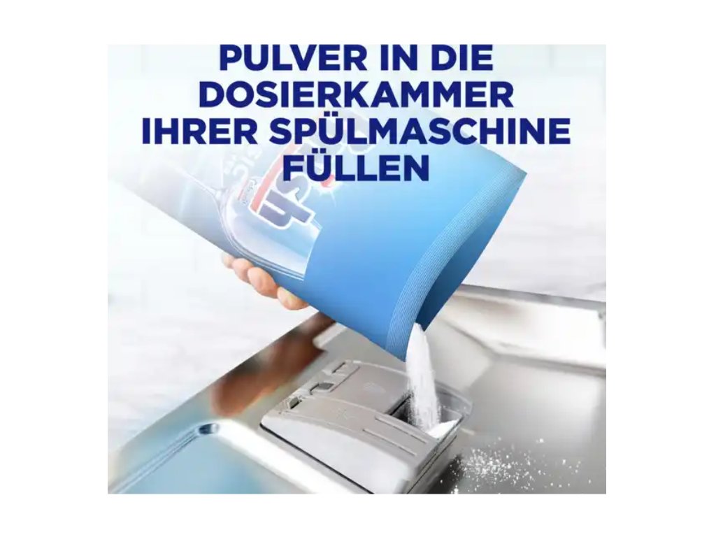 Parametry: Složení: 5–15 % bělidlo na bázi kyslíku, <5 % neiontové povrchově aktivní látky, <5 % polykarboxyláty, <5 % fosfonáty, enzymy (subtilisin, amyláza), parfém Návod k použití: Naplňte dávkovač v myčce podle jejího návodu – běžně po vyznačenou rysku. Použijte více prášku při silném znečištění, méně při menší náplni. Nepoužívejte do zásobníku na sůl. Upozornění: Výrobek není určen ke konzumaci. V případě požití vyhledejte lékařskou pomoc.