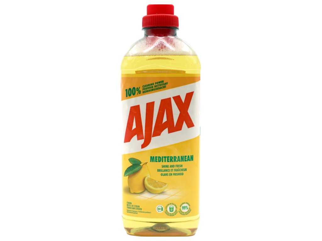Objevte svěžest a čistotu s Ajax Mediterranean Lemon, univerzálním čističem, který si poradí s každou špínou i mastnotou. Vůně šťavnatého citronu navodí pocit čistoty a svěžesti ve vaší domácnosti a účinná receptura zajistí hygienickou čistotu bez námahy.