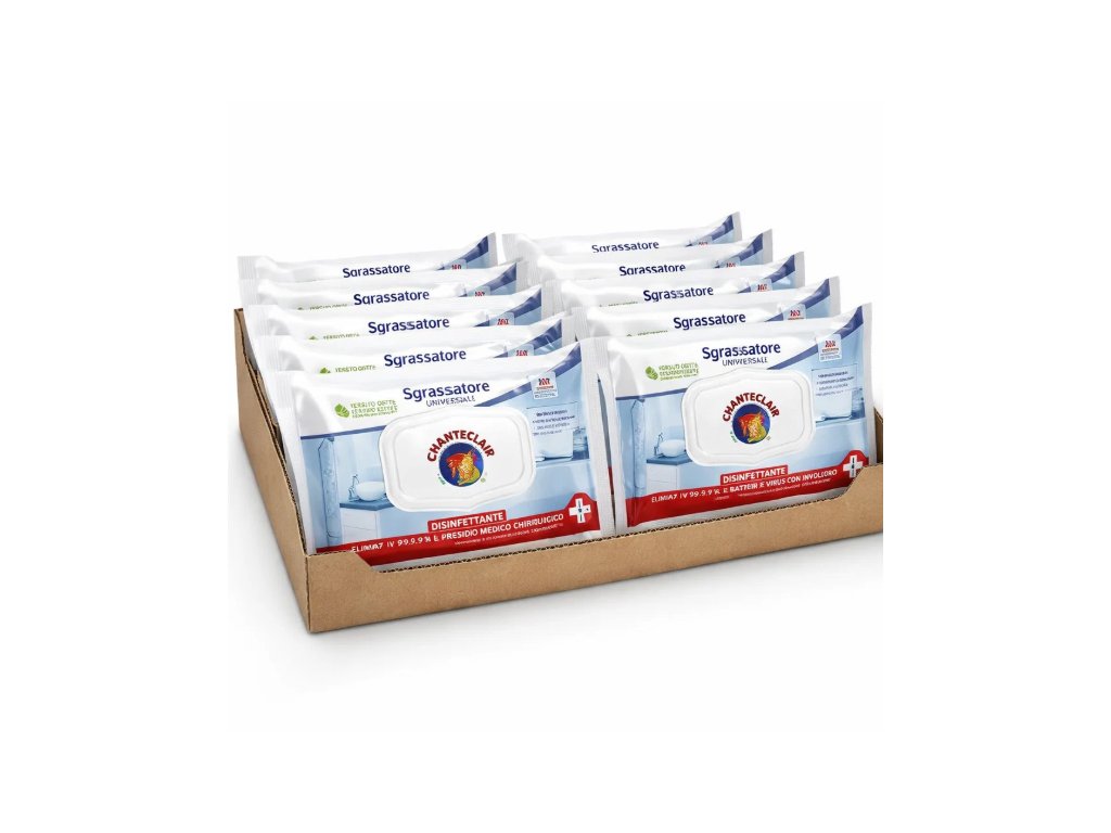 Dokonalá čistota na dosah ruky. Univerzální dezinfekční a odmašťovací ubrousky Chanteclair Sgrassatore Universale Disinfettante přinášejí rychlý, praktický a efektivní způsob, jak udržet vaši domácnost hygienicky čistou – bez nutnosti oplachování.