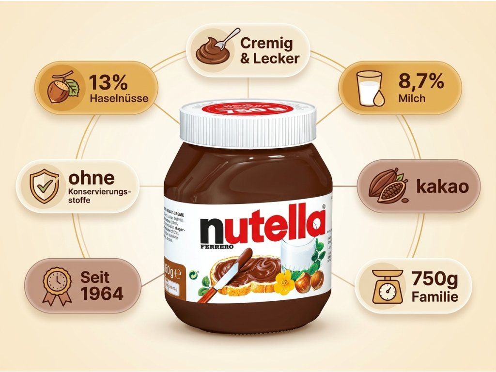 Nutella je ikonická značka, která v roce 1964 dostala svůj současný název a podobu. Každý rok se celosvětově spotřebuje přes 250 000 tun Nutellu — to odpovídá přibližně jedné sklenici za sekundu. Originální německá verze s originálním složením je exkluzivně na NěmeckýEshop.cz — v Česku běžně nedostupná.