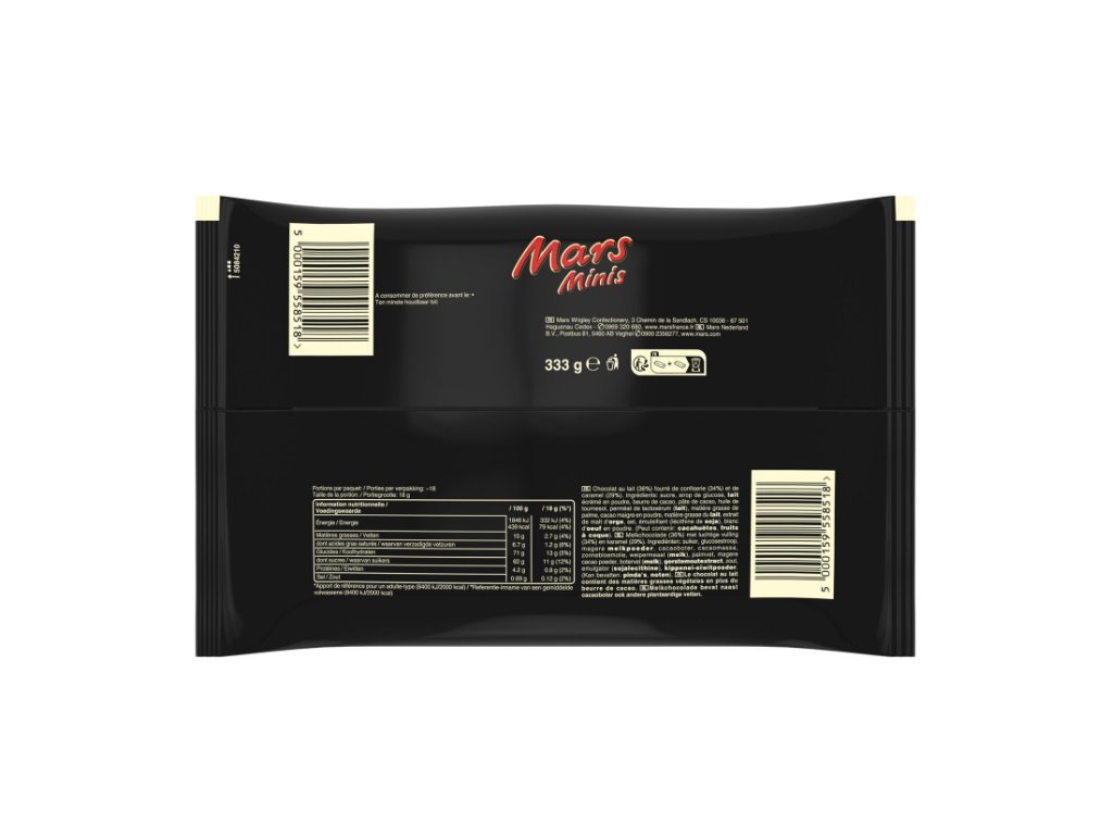 • Kombinace čokolády, karamelu a krému: Mars Minis jsou vyrobeny z kvalitní mléčné čokolády, která obaluje měkký střed tvořený candy krémem a jemnou vrstvou karamelu. Tato kombinace chutí a textur dělá z Mars tyčinek jedinečný zážitek pro každého milovníka sladkostí.