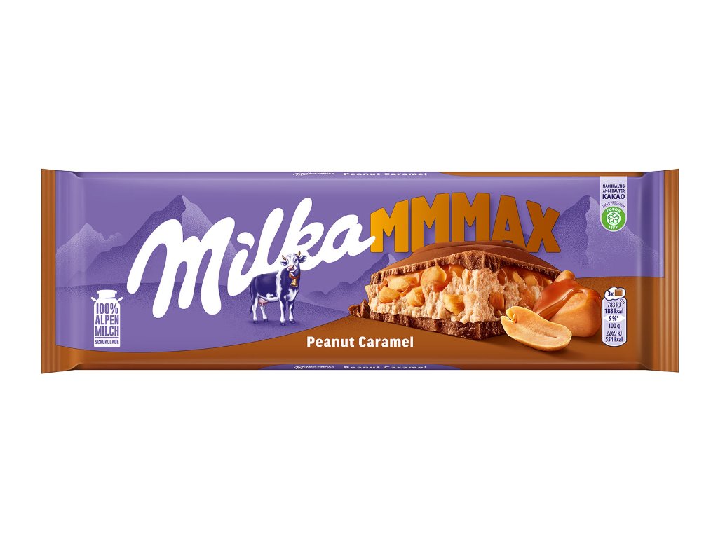 Milka Mmmax s arašídy a karamelem je XXL čokoládová tabulka, která spojuje krémovou jemnost a křupavost do jedinečné kombinace chutí. Tato tabulka z Alpenmilch čokolády s karamelovou a arašídovou krémovou náplní, křupavými rýžovými cereáliemi a celými arašídy nabízí plný zážitek pro všechny milovníky sladko-slaných pochutin. Každý kousek této tabulky je ve tvaru arašídové skořápky, která dokonale ladí s exotickým, sladko-slaným zážitkem z arašídů a karamelu.
