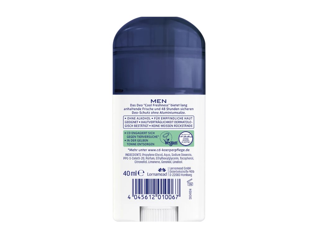 Zatímco běžné deodoranty mohou obsahovat hliníkové soli, alkohol nebo umělá barviva, CD Men Cool Freshness je formulován zcela bez těchto látek. Díky tomu je nejen šetrnější k pokožce, ale také vhodnější pro dlouhodobé používání. A navíc – obal je z 99 % recyklovatelný, což činí tento produkt lepší i pro naši planetu.