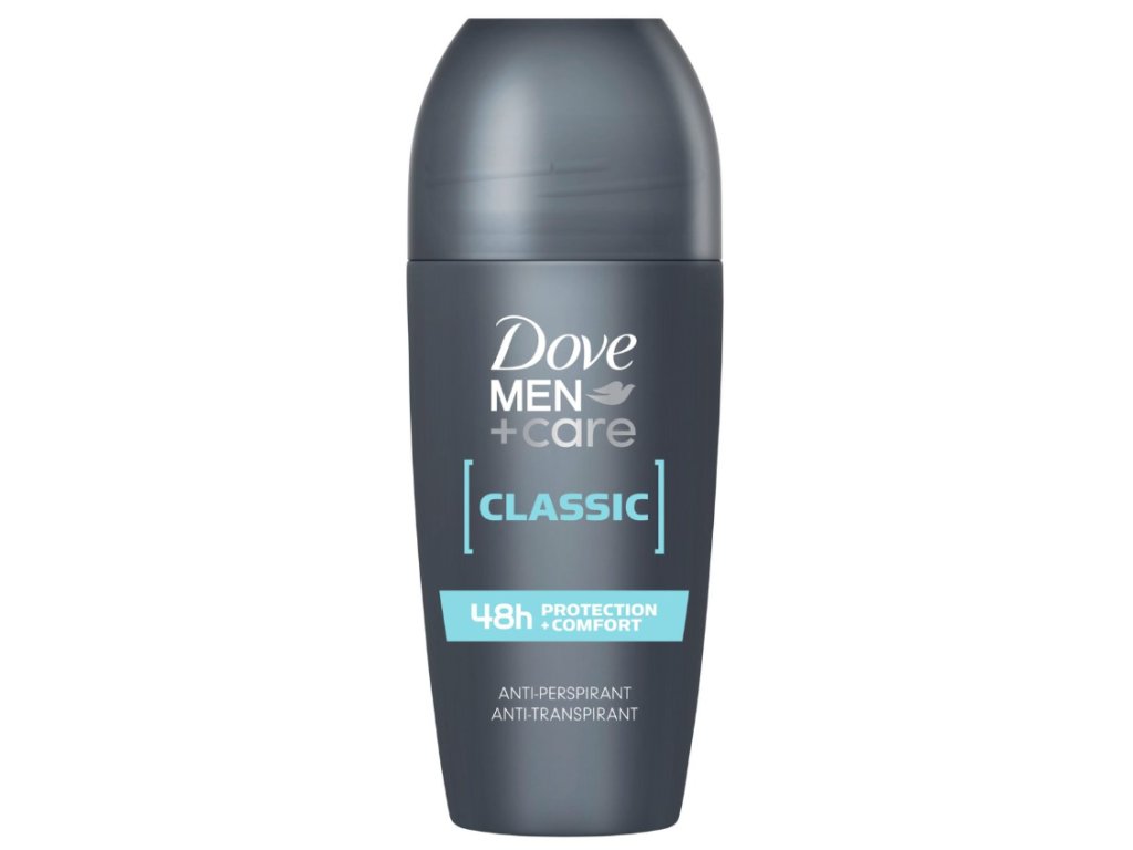 Dove Men+Care Antiperspirant Deodorant Roll-On Classic poskytuje spolehlivou ochranu a péči o mužskou pokožku, takže se můžete cítit svěží, suchá a sebevědomá po celý den.