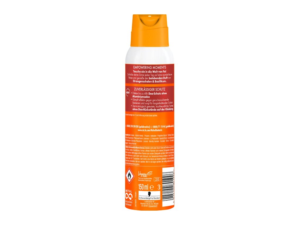 Probuďte své smysly a získejte dlouhotrvající svěžest, která vydrží celý den. Fa Empowering Moments je deodorant ve spreji s osvěžující vůní pomerančové kůry a bazalky, který vás nejen povzbudí ráno, ale ochrání vás i při náročném dni. Zajišťuje 48 hodin spolehlivé ochrany proti nepříjemnému zápachu, a to zcela bez hliníkových solí. Jeho veganské složení zároveň nepálí, nedráždí pokožku a nezanechává žádné stopy na oblečení.