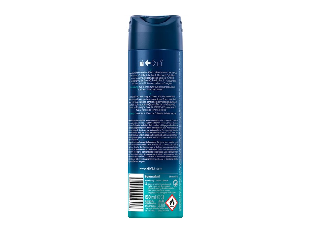 Potřebujete deodorant, který vás udrží svěží po celý den – bez kompromisů a bez hliníku? NIVEA MEN Fresh Ocean ve spreji je moderní řešení pro muže, kteří vyžadují účinnou ochranu proti zápachu a zároveň šetrnou péči o pokožku. Díky unikátní kombinaci mořských minerálů, antibakteriálních látek a osvěžující vůně přináší 48hodinovou ochranu bez použití hliníkových solí. Ať už jste v kanceláři, ve fitku nebo na výletě, s Fresh Ocean se budete cítit sebejistě a svěže.