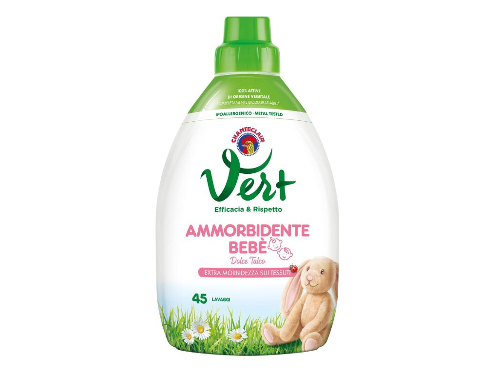 Chanteclair Vert Ammorbidente Bebé Dolce Talco je 100% přírodní ekologická aviváž, vyvinutá speciálně pro potřeby dětí a citlivé pokožky. Díky svému hypoalergennímu složení bez niklu, chromu, kobaltu a rtuti je naprosto bezpečná i pro novorozence.