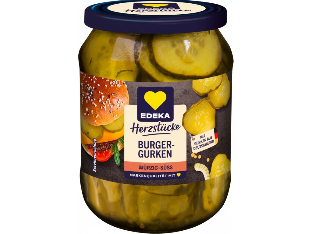 Chcete dodat svému domácímu burgeru něco navíc? Sáhněte po Edeka Bayrische Burger Gurken – perfektně nakrájených plátcích okurek, které dodají každému soustu jemně sladkokyselý, osvěžující a kořeněný šmrnc. Tyto okurky pochází přímo z Bavorska a byly vyrobeny s láskou k regionálním surovinám a tradičním recepturám. Bez umělých aromat, bez sladidel – jen poctivá chuť, kterou ocení každý gurmán. Vynikající nejen do hamburgeru, ale i do sendvičů, salátů nebo jako příloha k masu či sýru.