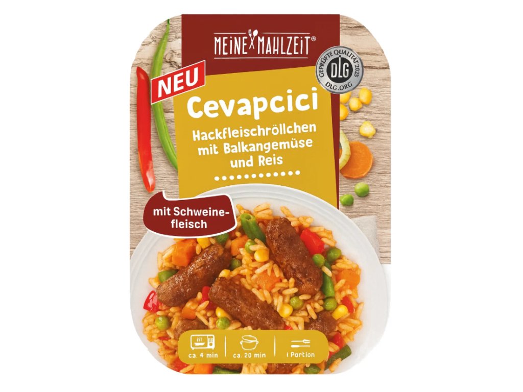 Meine Mahlzeit Čevapčiči s balkánskou zeleninou a rýží 300 g - originál z Německa