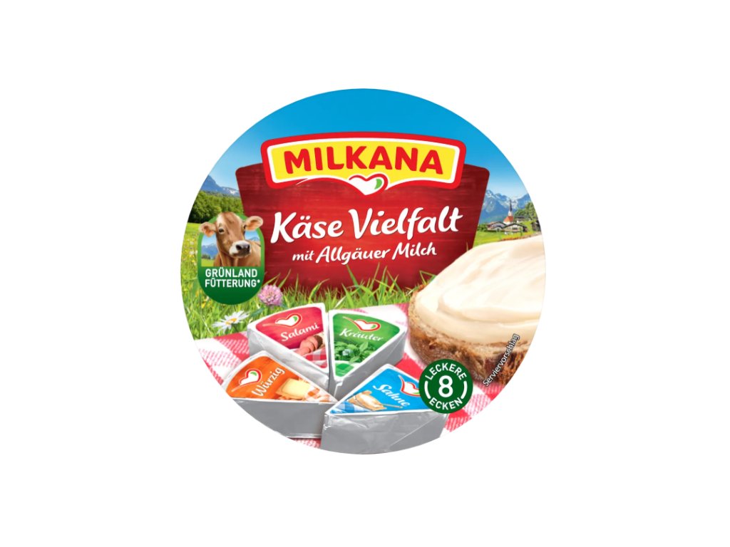 Milkana je tradiční značka s kořeny v německých Alpách, která vyrábí mléčné výrobky z nejkvalitnějšího mléka regionu Allgäu. Je známá jemnými, krémovými tavenými sýry a důrazem na jednoduchost, kvalitu a rozmanitost. V Německu je součástí mnoha domácností a nyní si ji můžete dopřát i vy – exkluzivně dovezeno, jen u nás.