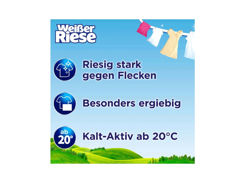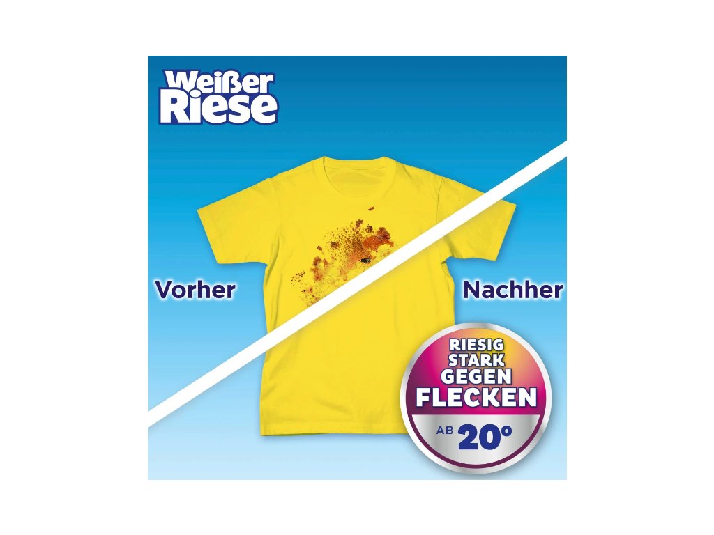 Weisser Riese je značka, na kterou se rodiny spoléhají již více než 50 let. Nabízí nejen obrovskou prací sílu, ale i dlouhotrvající svěžest a čistotu, na kterou se můžete spolehnout při každém praní. S Weisser Riese bude i ten největší koš na prádlo snadno zvládnutelný.