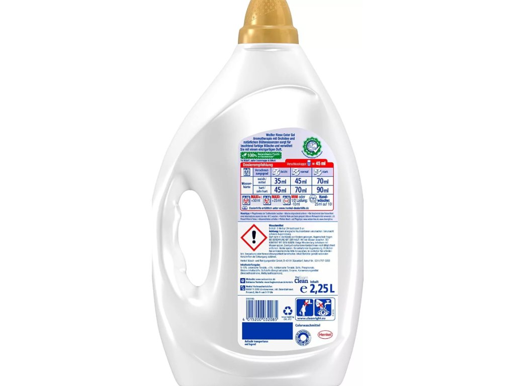 Weisser Riese Color Aromatherapie Floral Sensation Orchidej je vysoce účinný prací gel navržený pro péči o barevné prádlo, který nabízí více než jen čistotu. Tento prací gel kombinuje silný účinek proti skvrnám s luxusním zážitkem z vůně, což z něj činí ideální volbu pro rodiny, které hledají nejen efektivní, ale i voňavé řešení pro praní. S objemem 2,25 litru a kapacitou na 50 dávek je tento produkt mimořádně úsporný a vhodný pro každodenní použití.