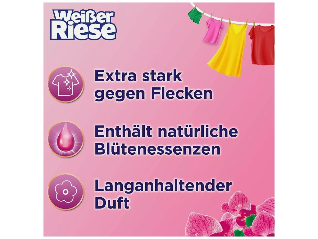 Weisser Riese je značka, na kterou se rodiny spoléhají již více než 50 let. Nabízí nejen obrovskou prací sílu, ale i dlouhotrvající svěžest a čistotu, na kterou se můžete spolehnout při každém praní. S Weisser Riese bude i ten největší koš na prádlo snadno zvládnutelný.