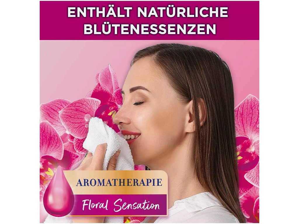 - Floral Sensation: Díky vylepšené parfémové technologii a přírodním květinovým esencím poskytuje prací gel intenzivní svěžest a dlouhotrvající vůni, která vás nadchne.