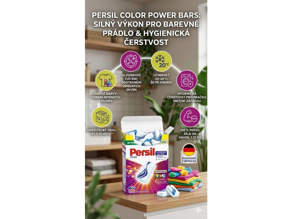Persil Color Power Bars v tabletách 60 dávek, 1,77 kg – Výkonný čistič pro barevné prádlo a hygienickou čistotu