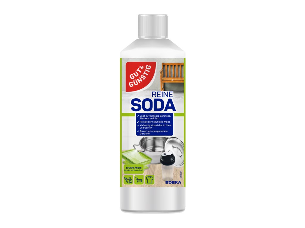 Gut&Günstig čisticí soda je tekutý víceúčelový čistič s osvědčenou recepturou, která rozpouští mastnotu, neutralizuje pachy a čistí do hloubky. Skvěle se hodí k mytí hrnců, plastových boxů, nerezového nádobí, dřezů nebo zahradního nábytku. Jeho přírodní složení umožňuje široké využití nejen v kuchyni, ale i v celé domácnosti a na zahradě. Bezpečně a účinně vyčistí i textilie nebo oblečení před praním. Navíc je biologicky odbouratelný, a tím šetrný k životnímu prostředí.