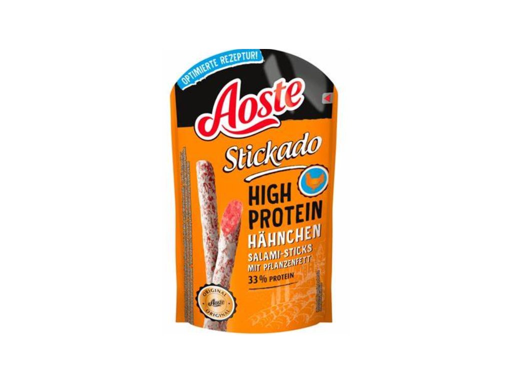 Vysoký obsah bílkovin: Aoste Drůbeží salámové tyčinky obsahují 33 % bílkovin, což je ideální pro všechny, kdo hledají proteinový snack.