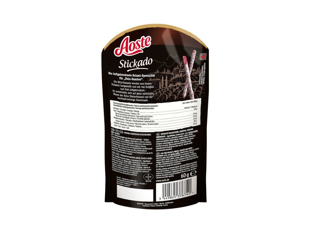 Snadná příprava: Aoste Salámové Tyčinky jsou skvélé přímo k jídlu, ale lze je také přidat do salátů, sendvičů nebo jako součást občerstvení na party.