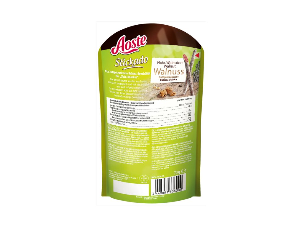 Všestranné použití: Aoste Salámové Tyčinky s Vlašskými Ořechy jsou skvělé nejen pro svačiny, ale také jako doplněk k salátům, teplým pokrmům nebo pro snackování při sledování filmu.