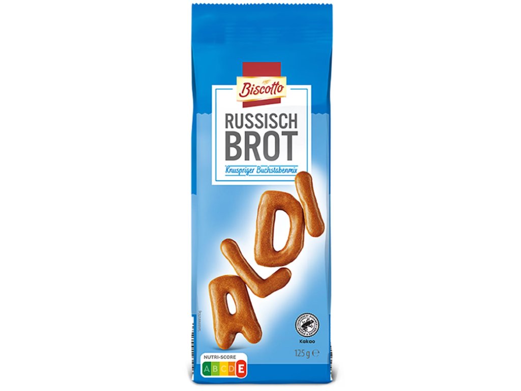 Biscoto Ruský Chléb 125 g – Křupavé písmenkové sušenky s kakaovou chutí