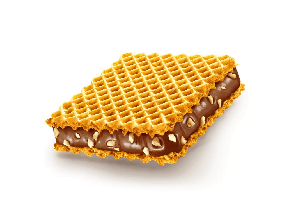 Základem této sladkosti jsou tenké a dokonale křupavé pšeničné oplatky, které vytvářejí ideální kontrast k jemné oříškové náplni. Oplatky jsou lehké, křehké a krásně doplňují krémovou strukturu náplně.