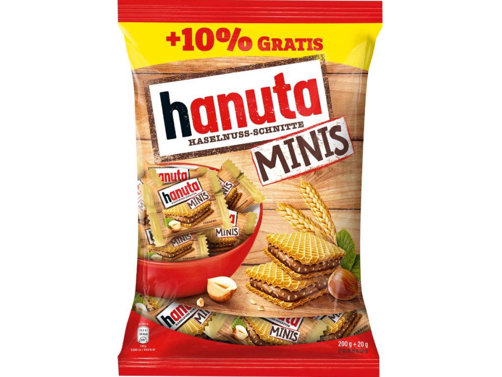 Ferrero Hanuta Minis jsou perfektní volbou pro všechny milovníky oříškových sladkostí. Křupavé oplatky, jemná oříšková náplň a praktické mini balení vytvářejí sladkost, která je ideální pro každodenní radost i sdílení s přáteli.