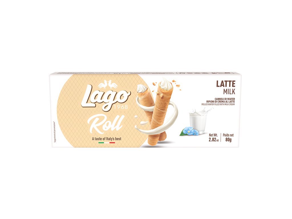 Trubičky Lago Roll Latte spojují křupavý, jemně zapečený wafer s mléčným krémem, který se doslova rozplývá na jazyku. Díky použití sušené syrovátky, odtučněného mléka a vaječného žloutku získává náplň příjemně smetanový tón, který nezahlcuje, ale ladně doplňuje celkový chuťový zážitek. Každý balíček ukrývá malé potěšení – decentní sladkost, která nikdy neomrzí.