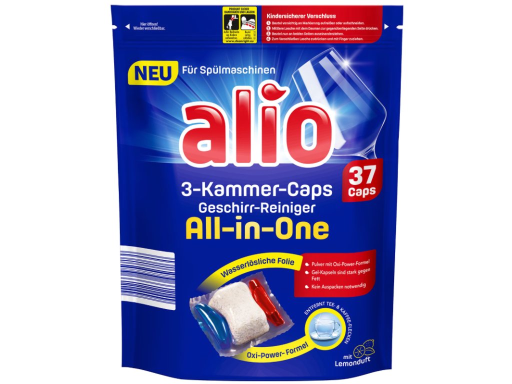 Alio je osvědčená značka německé drogerie s důrazem na funkčnost, efektivitu a jednoduché použití. Je známá především svými produkty do myčky nádobí, které nabízí kvalitu srovnatelnou s dražšími značkami za velmi příznivou cenu. Spolehlivý výkon potvrzený miliony domácností v Německu.