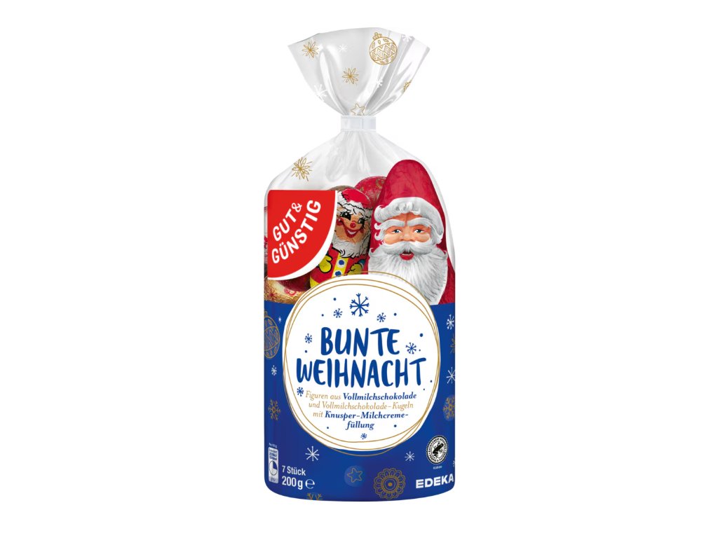 Hledáte sladký mix, který potěší děti i dospělé a navodí tu pravou sváteční atmosféru? Tento barevný vánoční balíček GUT&GÜNSTIG Bunte Weihnacht je přesně tím, co nesmí chybět u vánočního stromečku. Obsahuje směs dutých figur z plnotučné mléčné čokolády a čokoládové kuličky plněné křupavou mléčnou náplní – dokonalá kombinace tradice, zábavy a poctivé čokolády. Ať už chcete sladkou výzdobu, dárek pro děti nebo si jen zpříjemnit adventní večery, tenhle mix udělá radost všem generacím.