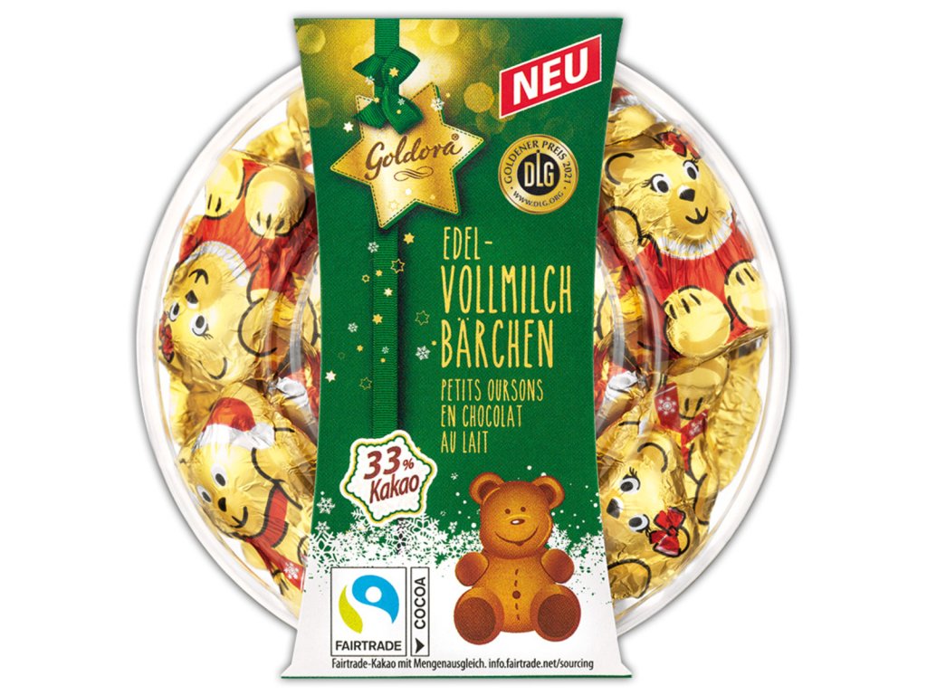 Na rozdíl od běžných čokoládových figurek, které často obsahují náhražky čokolády, přebytek cukru nebo umělé aroma, Goldora sází na poctivou německou výrobu a tradiční receptury. Každý medvídek je z pravé mléčné čokolády s 33 % kakaa, bez zbytečné chemie – čistá chuť, kterou si můžete dopřát bez výčitek. Kvalita, kterou poznáte po prvním kousnutí.