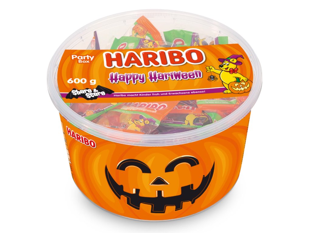 Haribo je legendární německá značka, která od roku 1920 vyrábí oblíbené želatinové bonbony. Její jméno je synonymem pro kvalitu, radost a tradici. Party boxy a speciální edice jako Halloween Happy Hariween jsou v Česku velmi vzácné – nyní je můžete mít i vy.