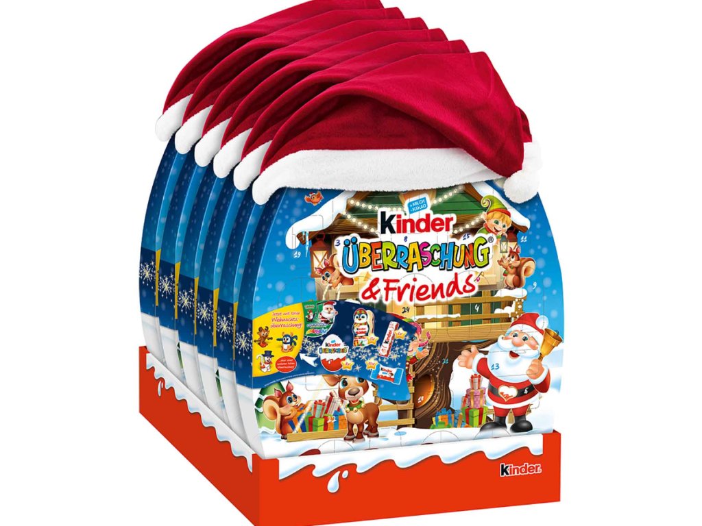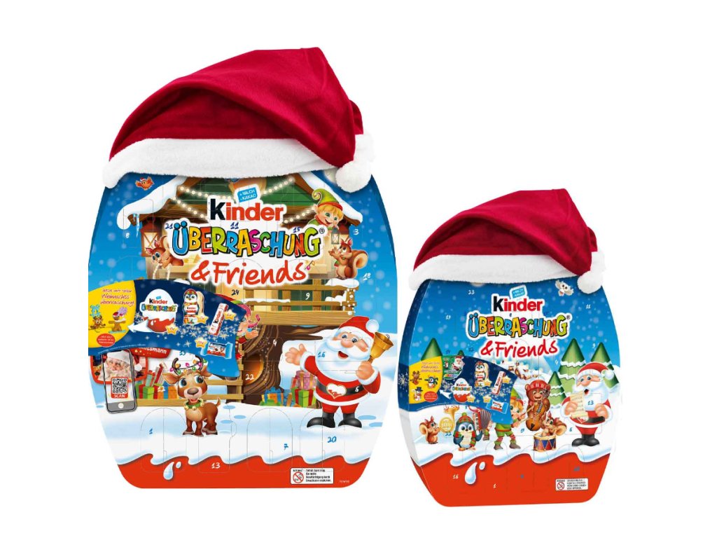 Hledáte zábavný a chutný adventní kalendář, který nadchne děti i dospělé? Kinder Überraschung & Friends je exkluzivní vánoční edice, která spojuje oblíbené čokoládové produkty Kinder s roztomilými sběratelskými figurkami a měkkou vánoční čepicí. Obsahuje 29 sladkých překvapení – včetně 8 vajíček Kinder Surprise, čokoládových figurek, tyčinek i klasické Kinder Schokolade. Navíc v balení najdete pět z osmi tematických figurek, které lze zavěsit na stromeček. Ideální pro malé objevitele, sběratele i všechny, kdo si chtějí užít advent naplno.