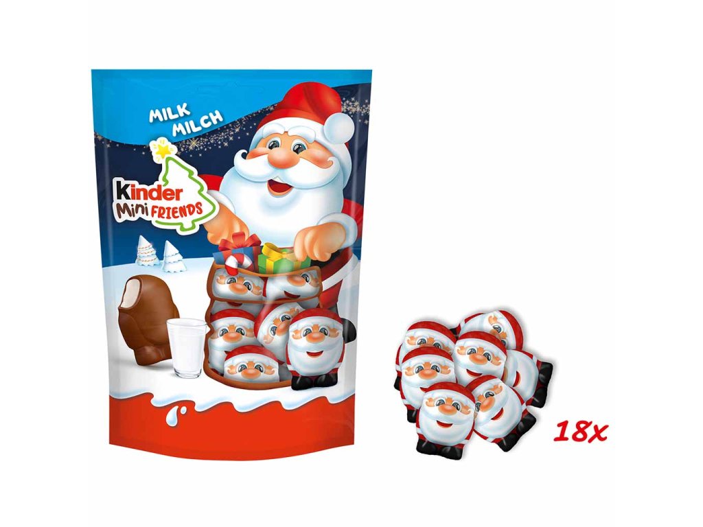 Sladká vánoční radost! kinder Mini Friends milk dokonale vystihuje oblíbenou chuť kinder čokolády. Roztomilí mini Santové jsou vyrobeni z jemné mléčné čokolády plněné jemným mléčným krémem. Skvěle se hodí na ozdobení dárků, konferenčního stolku nebo jako překvapení do Santovy punčochy.