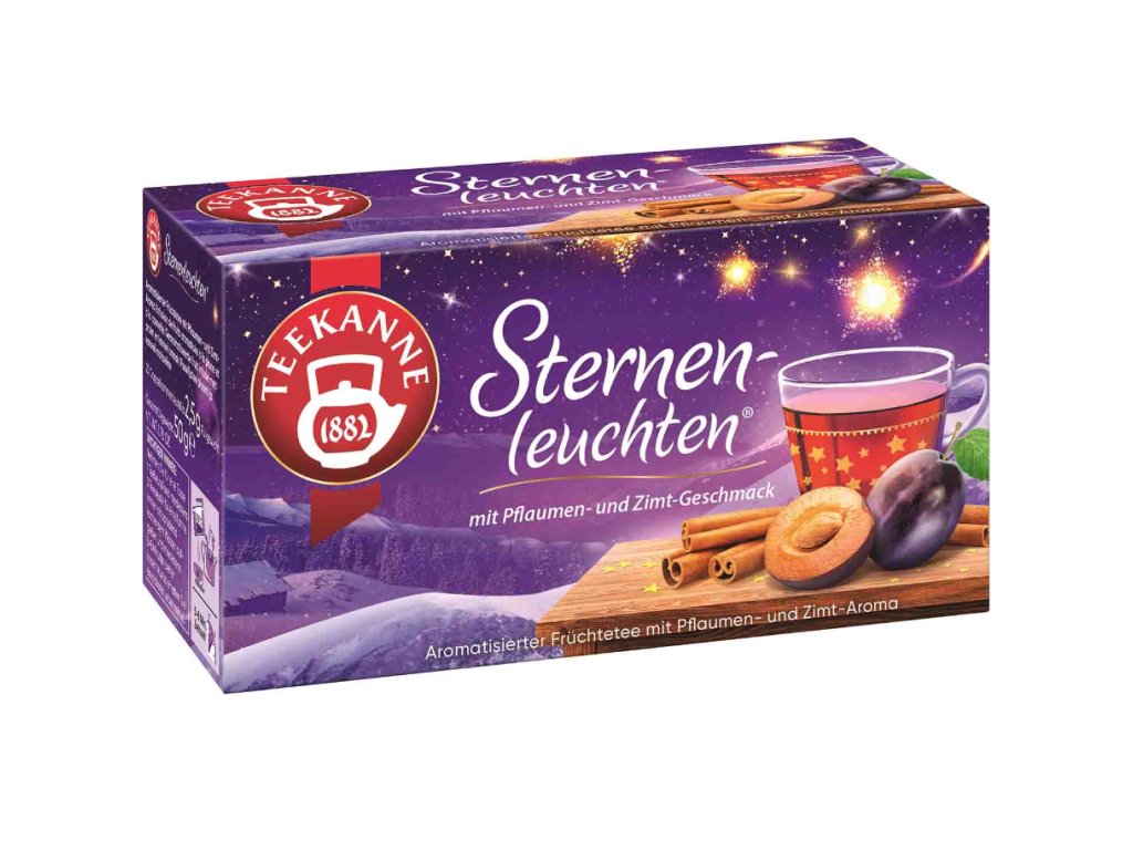 Hřejivá zimní směs s chutí švestek a skořice! Teekanne Sternenleuchten je ovocný čaj bez kofeinu, ideální pro zimní večery i adventní chvíle. 20 dvoukomorových sáčků, přírodní složení, bohatá chuť a kvalita z Německa. Nechte se unést kouzlem zimní pohody.