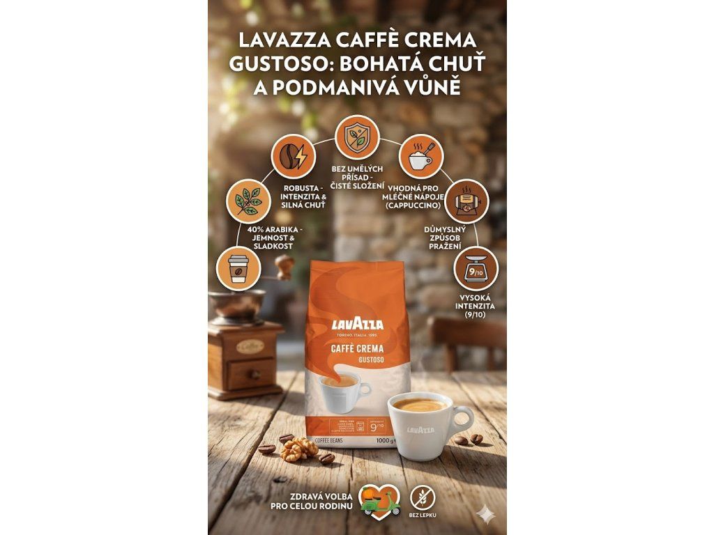 Lavazza Caffè Crema Gustoso Zrnková Káva 1kg – Káva s Bohatou Chutí a Podmanivou Vůní