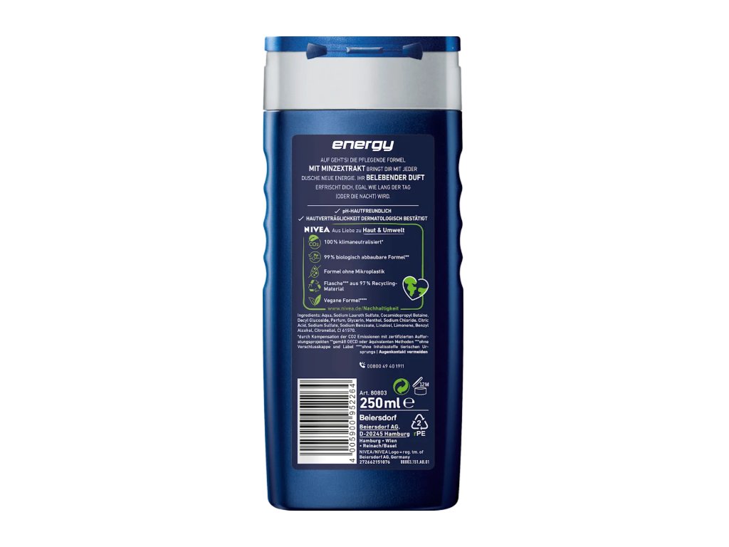 Nivea Men Energy je osvěžující 3v1 sprchový gel, který dodá vašemu ránu pořádnou dávku energie. Díky obsahu mentolového extraktu okamžitě probouzí pokožku a zanechává pocit čistoty a vitality po celý den. Speciálně navržen pro muže, kteří hledají rychlé a efektivní řešení každodenní péče.